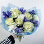 Букет из белых роз и синих ирисов